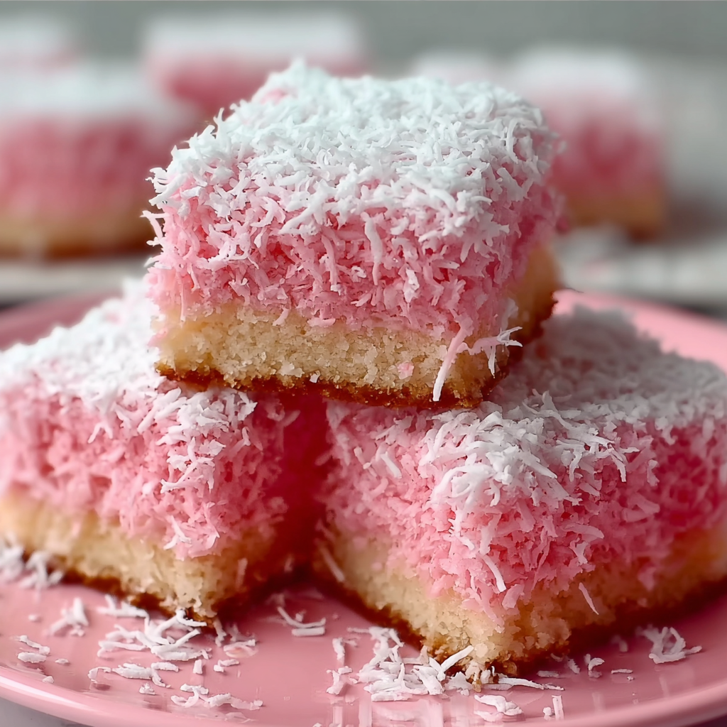 Pink Coconut Snowball Cake Bars