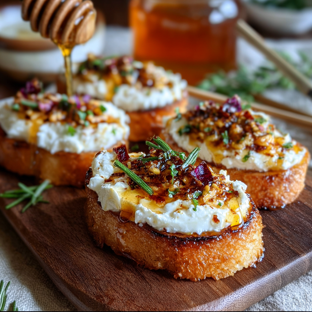 Sweet and Spicy Whipped Feta Crostini with Hot Honey Magic